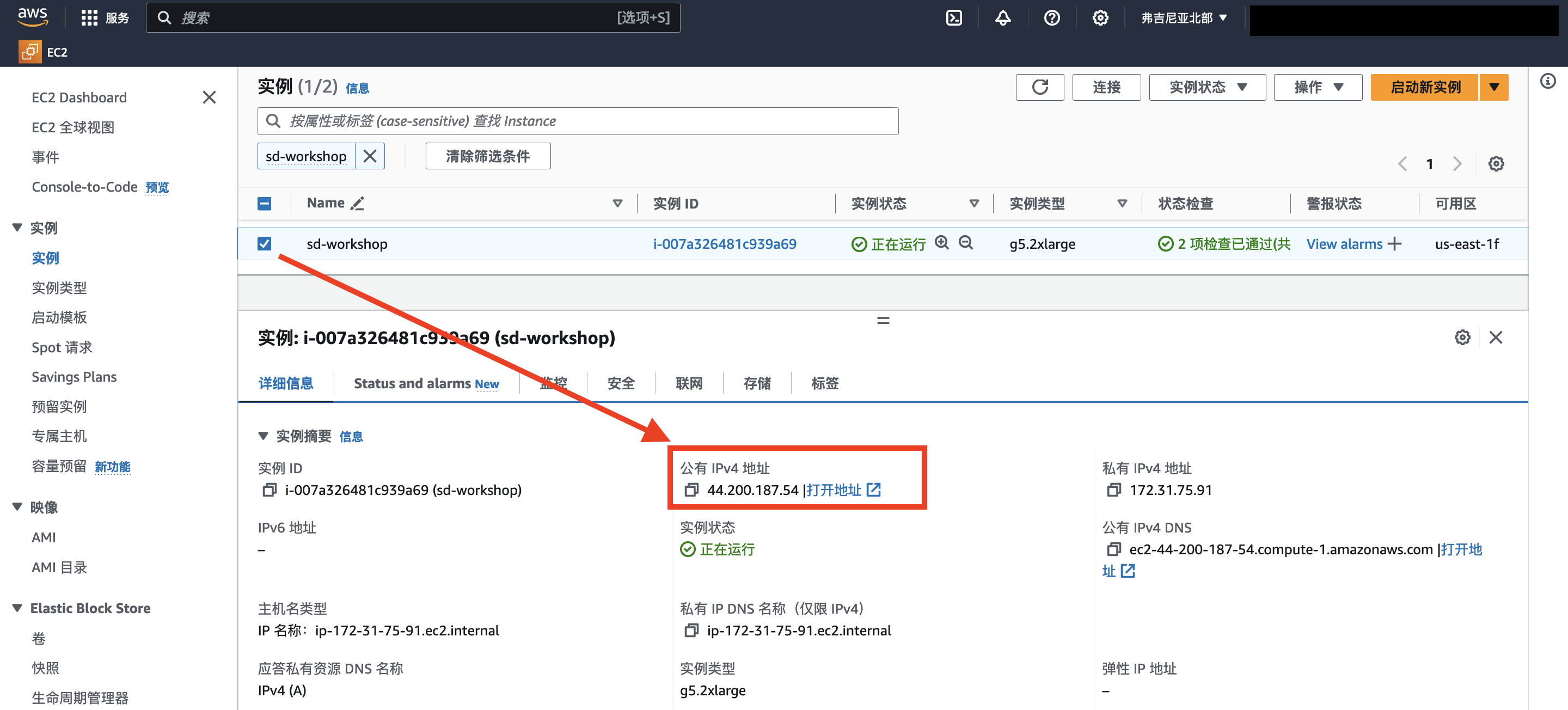 通过浏览器访问该 IP 地址的 80 端口,用户名为固定的webui,密码则为该 EC2 服务器的实例 ID,可以在EC2控制台找到。