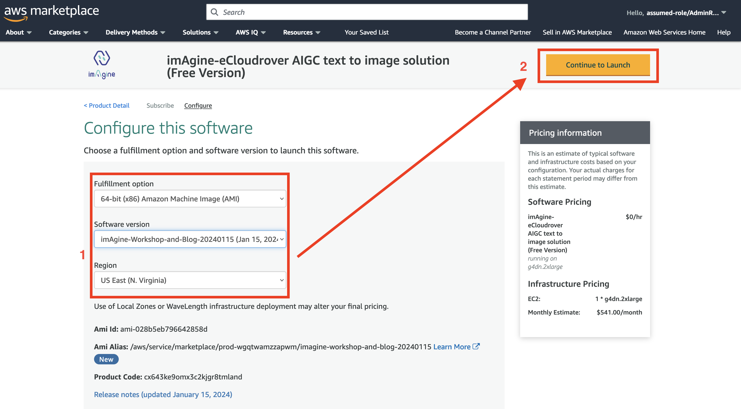 需要使用 EC2: g4dn.2xlarge 或 g5.2xlarge 加速计算实例,需要确认下账号是否有配额。